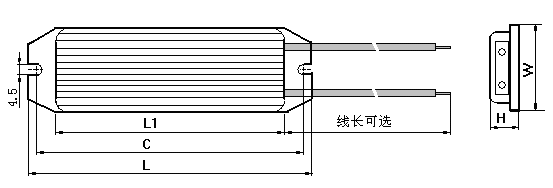 | 型號 | 功率(W) | 長L | 寬W | 高H | 安裝距C | 安裝開孔 |